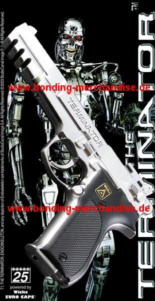 Terminator Amorcespistole, cap gun, Wicke Euro Caps, scale/Größe 1:1, Metall, wurde auch schon für Lara Croft Verkleidungen geordert. Wird nicht mehr hergestellt, not manufactured anymore. Online-Shop Bonding Merchandise